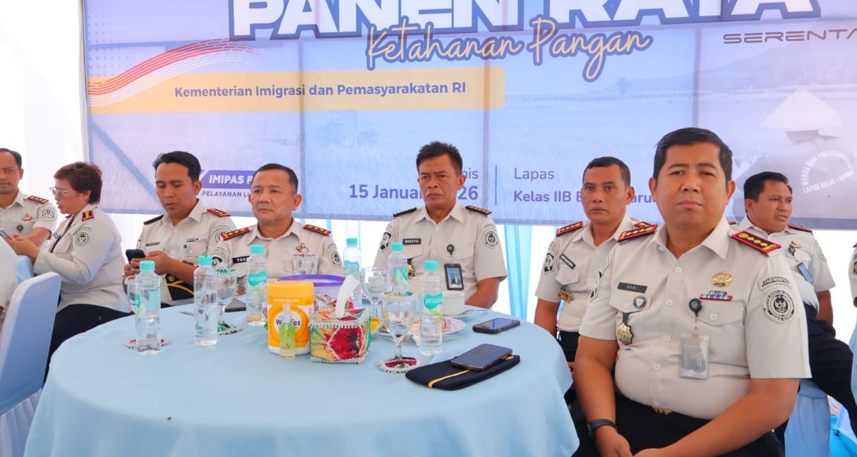 Kepala Lembaga Pemasyarakatan (Lapas) Narkotika Kelas IIA Karang Intan, Yugo Indra Wicaksi, menghadiri kegiatan Panen Raya Serentak Ketahanan Pangan Pemasyarakatan yang diselenggarakan oleh Kementerian Imigrasi dan Pemasyarakatan melalui Direktorat Jenderal Pemasyarakatan. bertempat di Lapas Kelas IIB Banjarbaru, Kamis (15/1). Kegiatan ini menjadi bagian dari program nasional dalam rangka mendukung ketahanan pangan sekaligus memperkuat kepedulian sosial Pemasyarakatan.