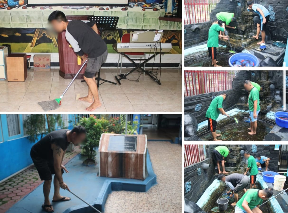 Dengan penuh semangat, warga binaan menyapu lantai, membersihkan kursi jemaat, hingga merapikan altar. Selain menjaga kebersihan, kegiatan ini juga menjadi sarana mempererat kebersamaan di antara warga binaan yang tergabung dalam komunitas Kristiani.