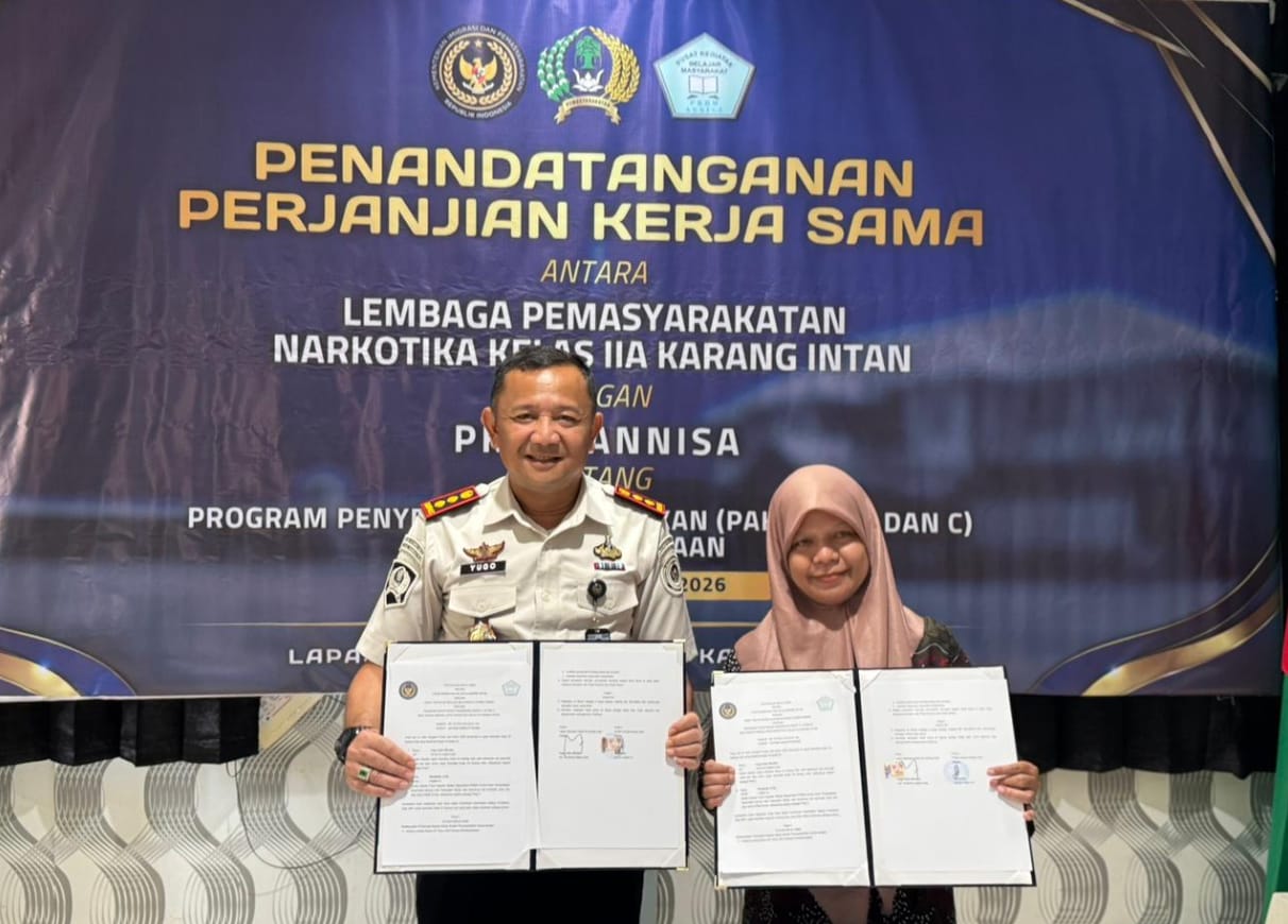 Komitmen menghadirkan pembinaan yang berdampak nyata kembali ditunjukkan Lembaga Pemasyarakatan (Lapas) Narkotika Kelas IIA Karang Intan melalui penandatanganan Perjanjian Kerja Sama dengan Pusat Kegiatan Belajar Masyarakat (PKBM) Annisa Kecamatan Karang Intan, Kabupaten Banjar. Kerja sama ini difokuskan pada penyelenggaraan Program Penyetaraan Pendidikan Paket A, B, dan C bagi warga binaan, sebagai langkah strategis membuka akses pendidikan yang inklusif di dalam lapas, Rabu 08 April 2026.
