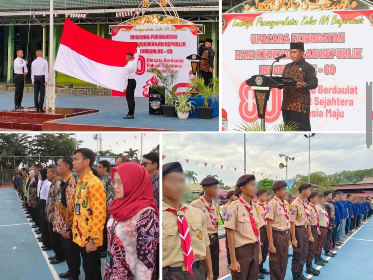 Suasana khidmat menyelimuti halaman utama Lembaga Pemasyarakatan (Lapas) Kelas IIA Banjarmasin saat pelaksanaan Upacara Bendera memperingati Hari Ulang Tahun (HUT) ke-80 Republik Indonesia pada Minggu (17/08) pagi. Upacara ini menjadi momentum penting bagi jajaran Lapas untuk menumbuhkan semangat nasionalisme serta mengingat kembali jasa para pahlawan yang telah berjuang merebut dan mempertahankan kemerdekaan.