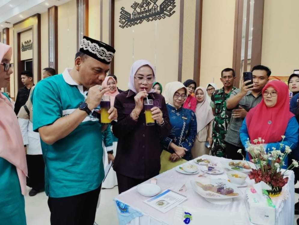 Ria Hartini menyampaikan apresiasinya terhadap kreativitas dan kerja keras kader PKK dalam menyajikan stand yang menarik dan penuh dengan produk-produk lokal. Ia juga ikut mencicipi makanan dan minuman yang disajikan oleh pelaku usaha kecil di setiap stand.