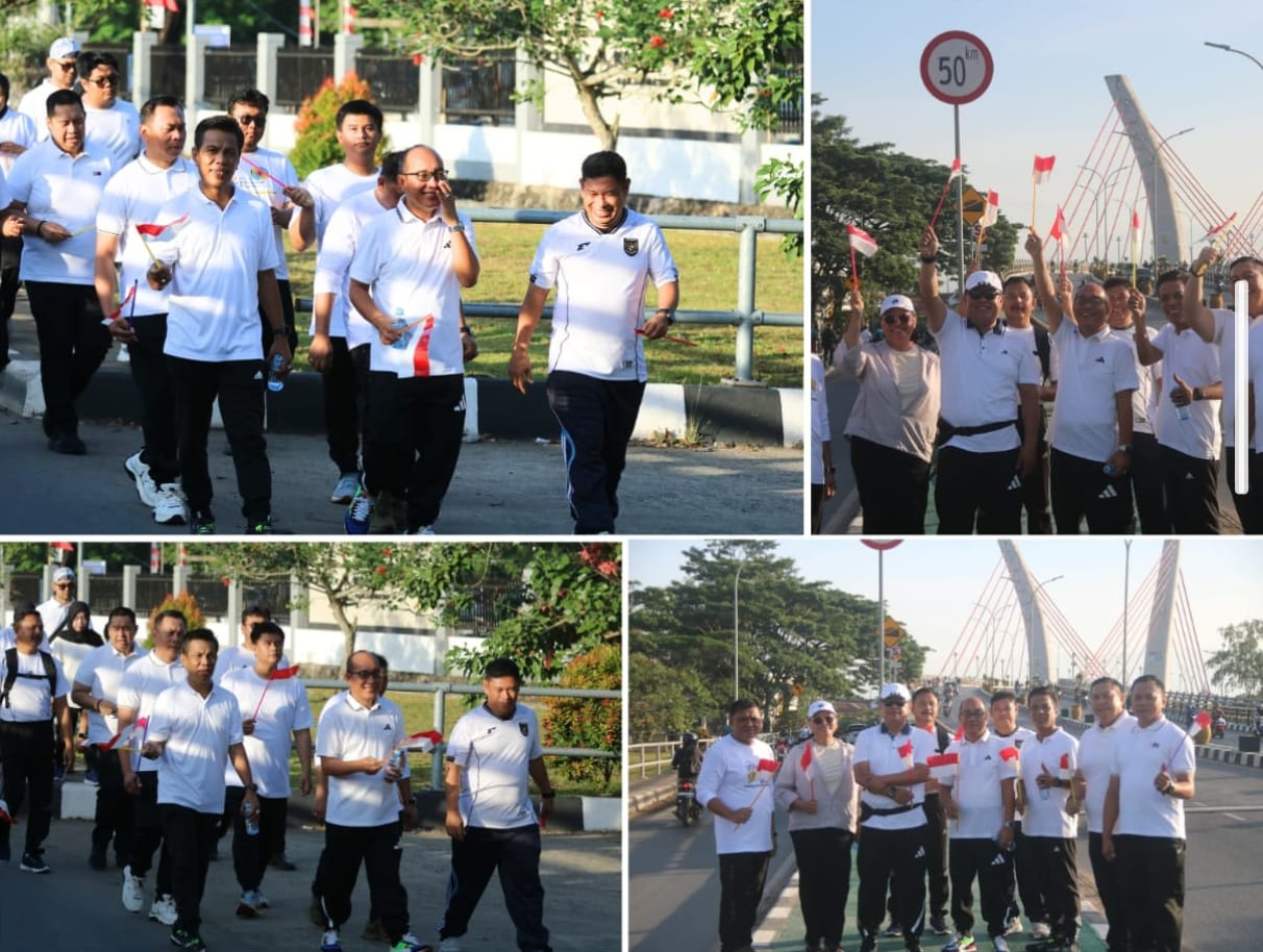 Kepala Lapas Kelas IIA Banjarmasin, Akhmad Herriansyah, turut berpartisipasi dalam kegiatan senam dan jalan santai yang digelar oleh Kantor Wilayah Kementerian Hukum Kalimantan Selatan dalam rangka memperingati Hari Pengayoman ke-80, Kamis (14/08) pagi.
