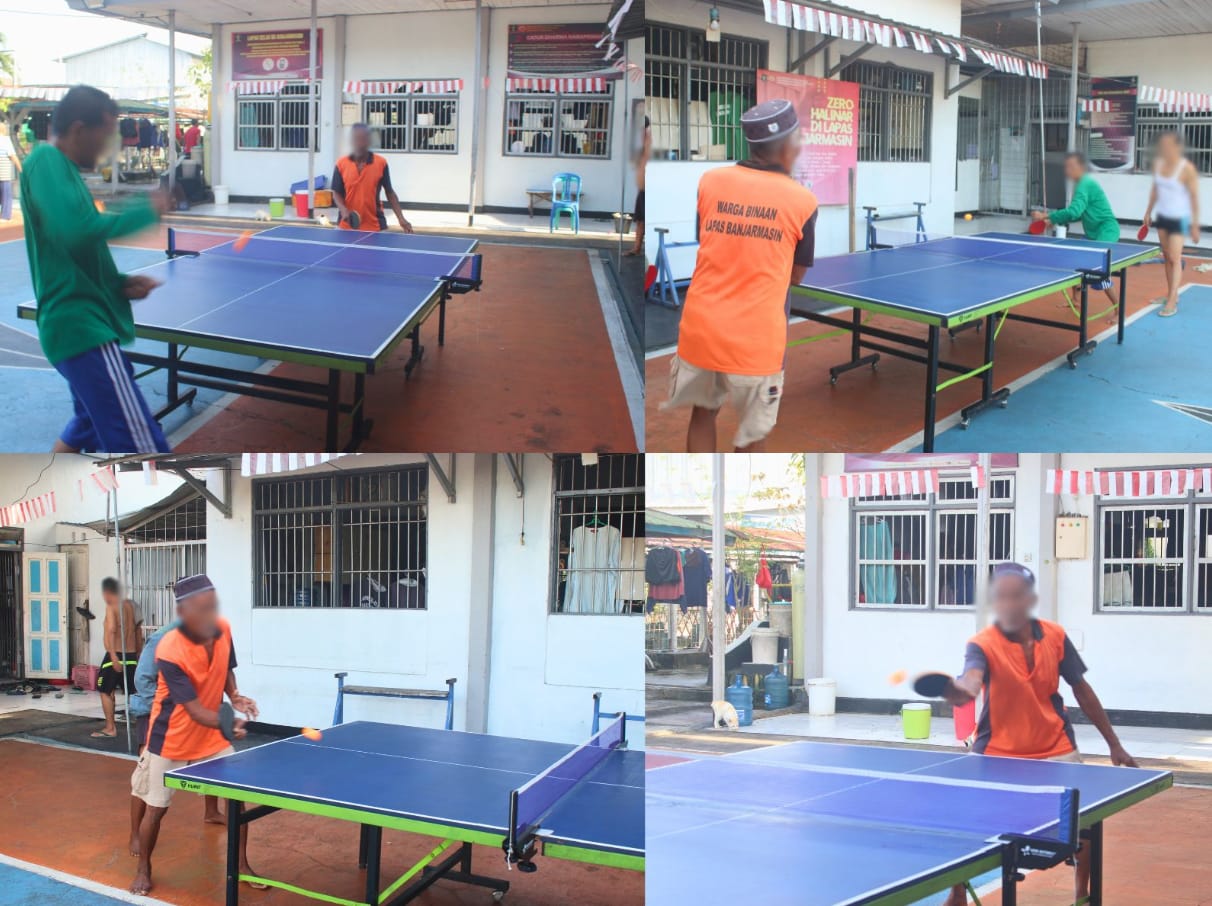 Minggu pagi (14/09) pagi, suasana di Blok Flamingo Lapas Kelas IIA Banjarmasin terasa meriah. Beberapa Warga Binaan Pemasyarakatan (WBP) tampak asyik mengadu ketangkasan dalam permainan tenis meja.