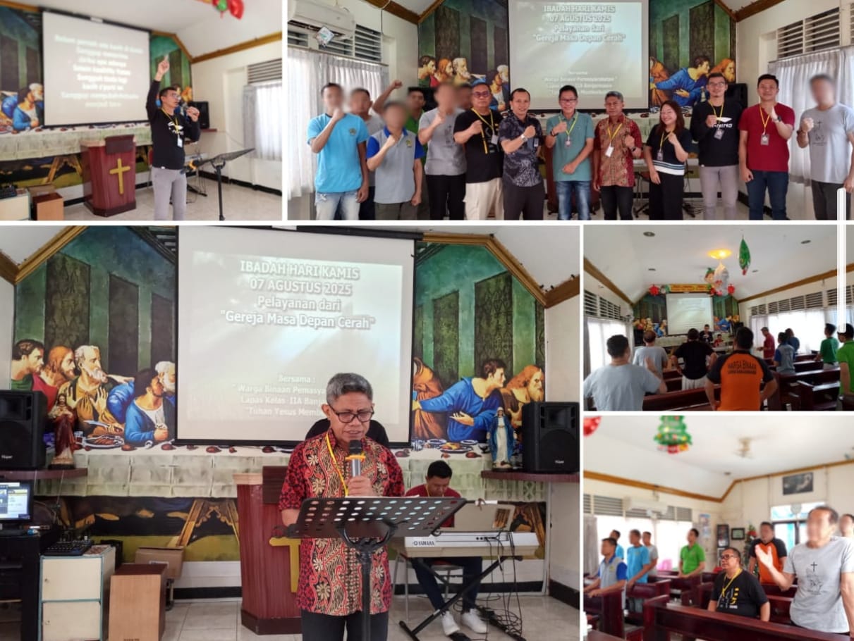 Suasana khidmat dan penuh pengharapan menyelimuti Gereja Oikumene Lapas Kelas IIA Banjarmasin pada Kamis (07/08), saat seluruh warga binaan pemasyarakatan (WBP) beragama Kristiani mengikuti ibadah rutin bulanan bersama Gereja Masa Depan Cerah (GMDC).
