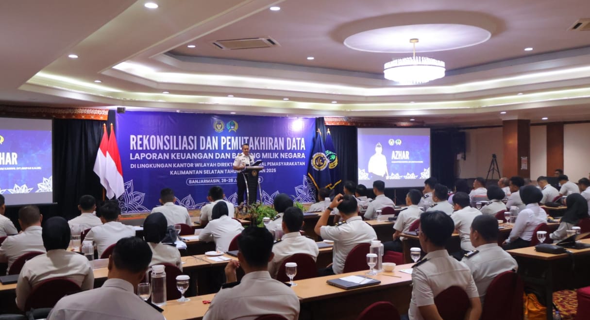 Kepala Kantor Wilayah Direktorat Jenderal Pemasyarakatan (Ditjenpas) Kalimantan Selatan, Mulyadi, secara resmi menutup kegiatan Rekonsiliasi dan Pemutakhiran Data Laporan Keuangan serta Barang Milik Negara (BMN) Tahun Anggaran 2025, Rabu (28/1). Kegiatan yang berlangsung di Swiss-Belhotel Borneo Banjarmasin sejak Senin (26/1) tersebut diikuti oleh para operator General Ledger dan Pelaporan (GLP) serta operator BMN dari seluruh Unit Pelaksana Teknis (UPT) Pemasyarakatan se-Kalimantan Selatan.