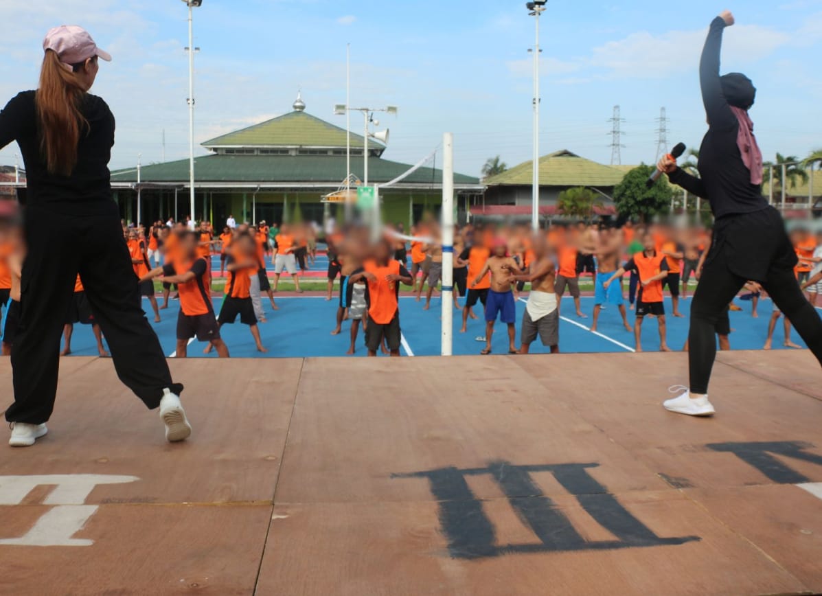 Kegiatan ini dipandu oleh dua instruktur senam dari luar lapas, Tina dan Bunga, yang memimpin dengan semangat tinggi dan gerakan energik. Iringan musik ceria menambah keceriaan suasana pagi di lapangan dalam Lapas.